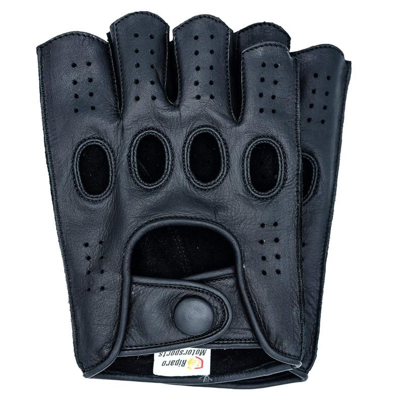 Riparo Mens Genuine Leather Reverse Stitched Fingerless Half-Finger Driving Motorcycle Gloves (X-Large, Black)