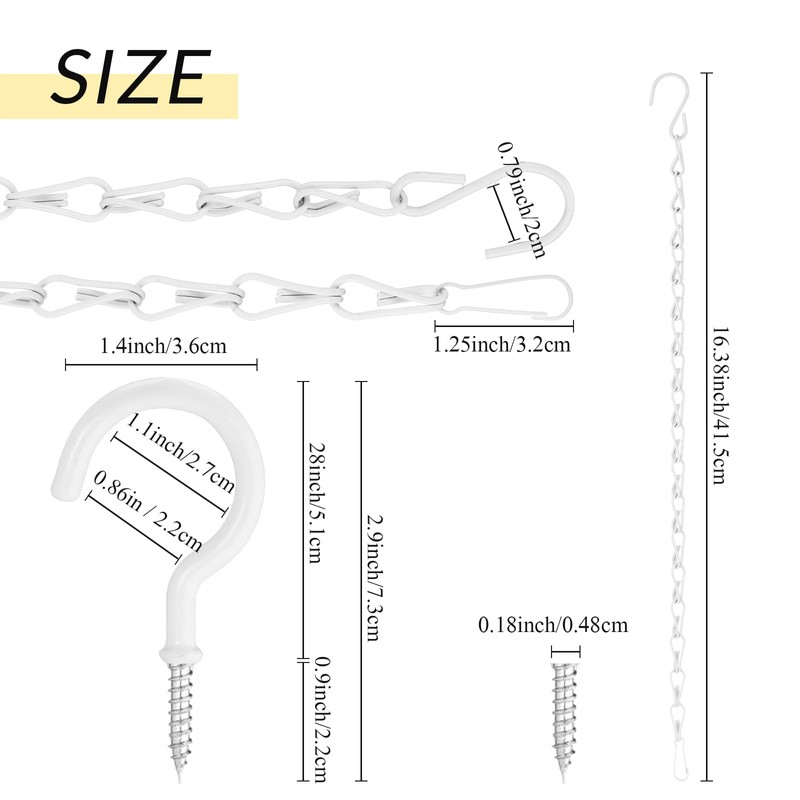- Widely Applicable: the hanging basket chain with Hook is suitable for the hanging and installation of bird feeders, plant baskets, aviaries, flower pots, tallow baskets, lanterns, wind chimes, billboards, chalkboards, decorations and other fixtures; Use your imagination to explore its uses, not only to help you save space and organize items, but also to decorate your home, white and classic design will add beauty to your home