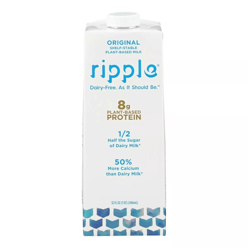 our world famous plant-based milk: the product that made us who we are, now available as shelf stable! our plant-based milk is 100 dairy-free, nut-free, soy-free, gluten-free, lactose-free & non-gmo, so you can enjoy worry-free!The better non-dairy milk: pea protein has higher nutritional value, is more eco-friendly, sustainable and tastes better than almond, soy, oat and other plant-based milks!Delicious & nutritious: our plant based milk contains 8g of protein per serving, 50 more calcium than milk, low sugar (50 less than milk), and a great source of iron, vitamin d & other essential vitamins & minerals. Ripple milk is better for you, and better tasting too!Shelf-stable: enjoy at your own pace (before the expiration date of course). Our shelf-stable pea protein milk is able to be used instantly or saved in the pantry until you are ready. Making it the perfect option for a quick, healthy, grab & go beverage! super convenient!Business for good: as both a public benefit corporation (pbc) and a certified b corp company, we're committed to high standards of sustainability, transparency and performance across all areas of our business