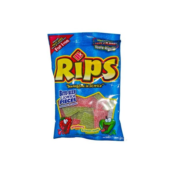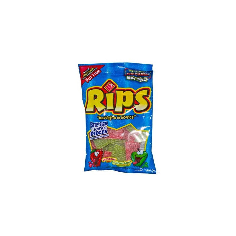 Rips (1) Bag Licorice Bite Size Candy - Strawberry & Green Apple - Fruit Juice Flavored Fat Free 3.5 oz