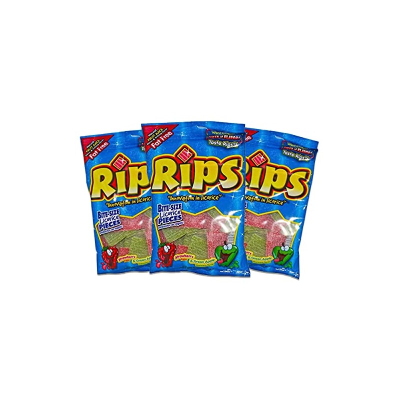 Rips Licorice Bite Size Candy - Strawberry & Green Apple - Fruit Juice Flavored Fat Free 3.5 oz (3)