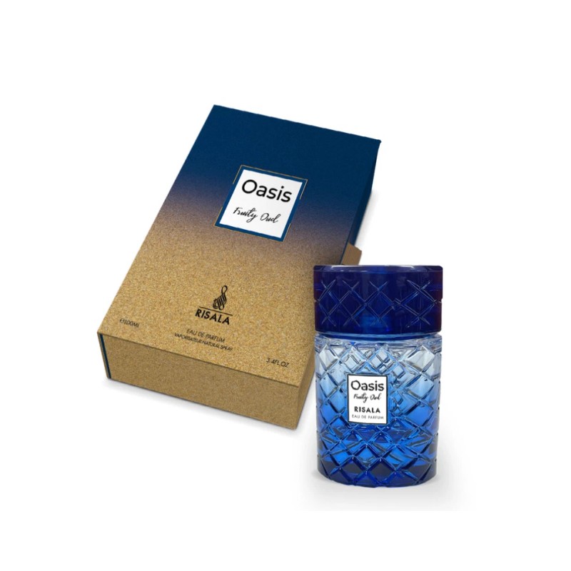 With Oasis Fruity Oud by Risala, experience a fragrance that’s both playful and powerful—fruit-forward with an unforgettable oud finish.