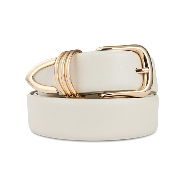 RISANTRY Women's Leather Belts for Jeans Dresses, White Leather Waist Belt Fashion Ladies Belts with Gold Buckle
