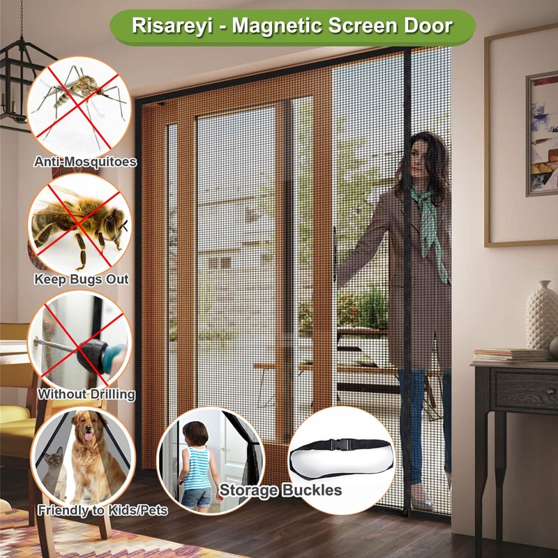 - Self Closing with Strong Magnets: Thanks to more than 34 powerful magnets wrapped inside the middle fabric, Screen door magnetic closes automatically after you passing through, it close quietly, friendly to children and pets, pets won't fear this screen