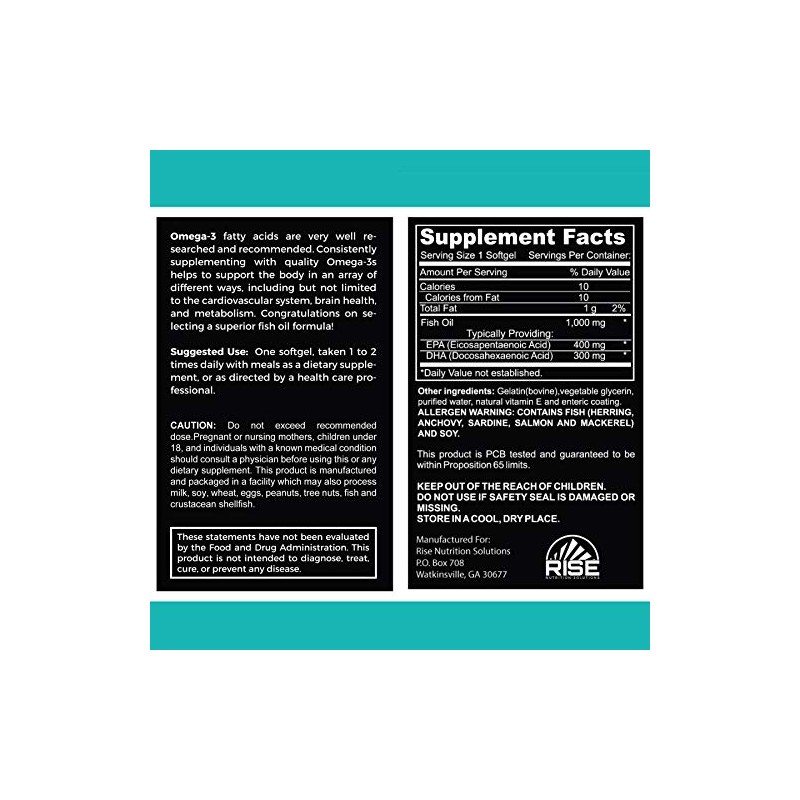 Rise Nutrition Solutions, Elite Omega 3 Suplemento nutricional (aceite de pescado) Frmula - Producto Original de Alta Calidad, Entrega Rápida y Segura