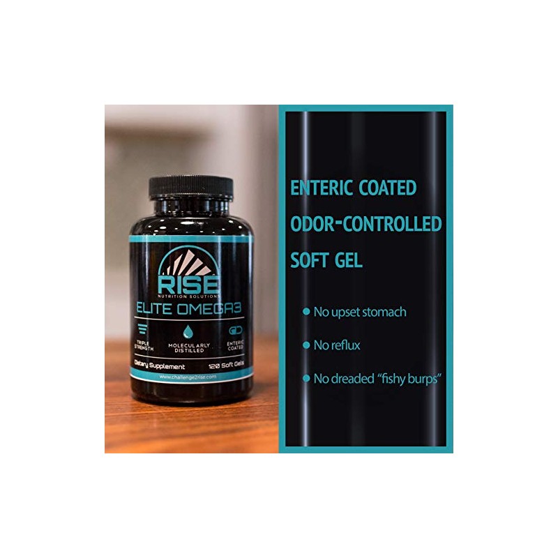 - 3s de calidad se leen como una lista de deseos. Elite Omega 3 utiliza solo el mejor aceite de pescado, cosechado fresco y fabricado bajo estrictos estándares de control de calidad. Cada cápsula de gelatina suave proporciona 400 miligramos de EPA y 200 miligramos de DHA, ¡más del doble que la de la mayoría de los productos de aceite de pescado en el mercado! El aceite delicado se procesa utilizando uno de los mejores métodos de purificación disponibles, Destilación molecular, que es el único método actual que puede quitar metales pesados, PCB y otras toxinas a los límites detectables para el consumo humano. En comparación con la mayoría de otros métodos de procesamiento que calientan el aceite a temperaturas de hasta 250 grados Celsius durante 6 horas, la destilación molecular tarda solo 45 segundos a la misma temperatura ayudando a preservar la calidad del aceite de pescado y garantiza que no se crean grasas trans. Elite Omega 3 no se detiene allí. Aquellos que han experimentado previamente dolor de estómago o reflujo de otros aceites de pescado deben encontrar este softgel con recubrimiento entérico, controlado por olor más fácil de digerir y absorber. Fórmula de triple fuerza – pureza sin igual – entérico – la elección es clara. Elite Omega 3 es su mejor opción cuando se trata de un producto Omega