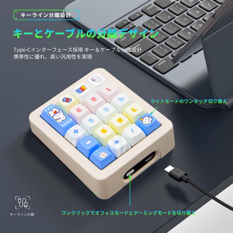 • Multi-functional and Scenes to Use: Switch between game/office modes: The speed of the response can be adjusted to suit your needs. Type C key line separation: convenient to carry and store