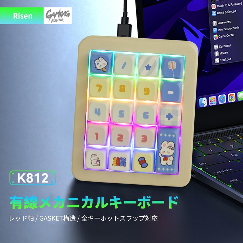 ■ Professional Grade Gaming Keyboard Risen K812 is a high performance mechanical keyboard for e-sports players and typists. The red axis provides a light touch and fast response. All keyless collision-free design ensures complete handling of complicated command inputs. ■ Fun of light and customization Built-in RGB backlight with 12 different light effects to choose from. Easy to see your keys in the dark and enhance the immersive experience of the game. In addition, you can register sequence and shortcuts with the macro key setting to gain overwhelming advantage in combat. ■ Customize your own personal heat release shaft design makes it easy to change axes without tools. You can adjust the key feel and sound to your preference. The GASKET construction absorbs shock when hitting, and is designed to prevent fatigue even after long periods of use. ■ Great for all occasions Game Mode: Super low delay to focus on play. Office Mode: With an emphasis on silence, you can work without worrying about your surroundings. Type C Cable Separation: Keep your desk neat and organized. ■ Reliable quality Aluminum body is sturdy yet weighs only 420g. Compact size (4.6 x 3.9 x 1.5 inches (116 x 98 x 39 mm)