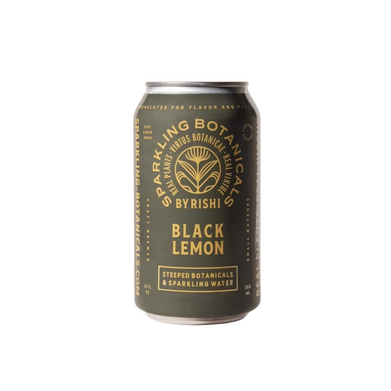 Rishi Tea Black Lemon Sparkling Botanicals Sparkling Water - Organic, Unsweetened, Zero Added Sugar, Caffeinated, Real Plants, Virtus Botanicals - 12 oz (Pack of 12)