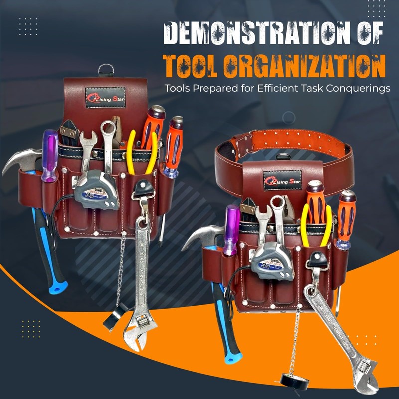 Whether you're working on a complex construction project or a simple home repair, the RISING STAR WEARS-11 Pockets Leather Tools Holder ensures that your tools