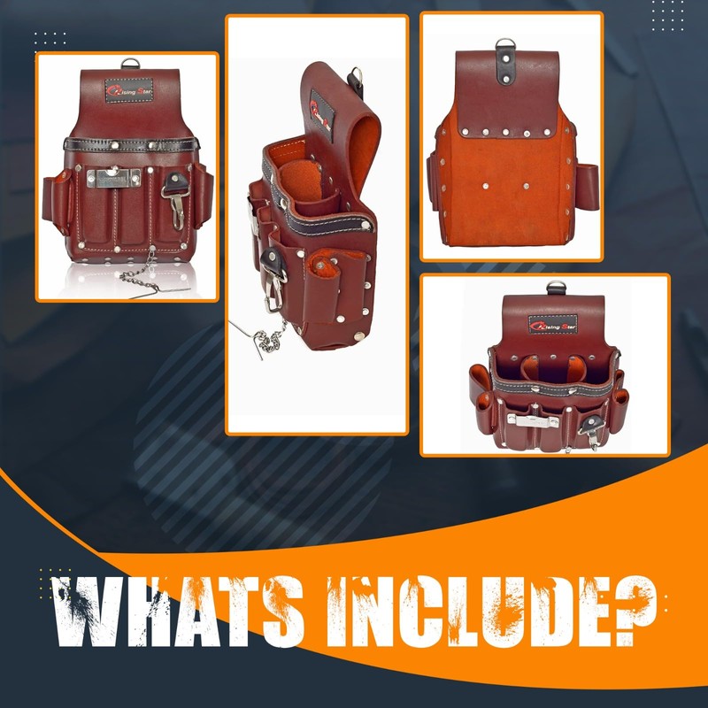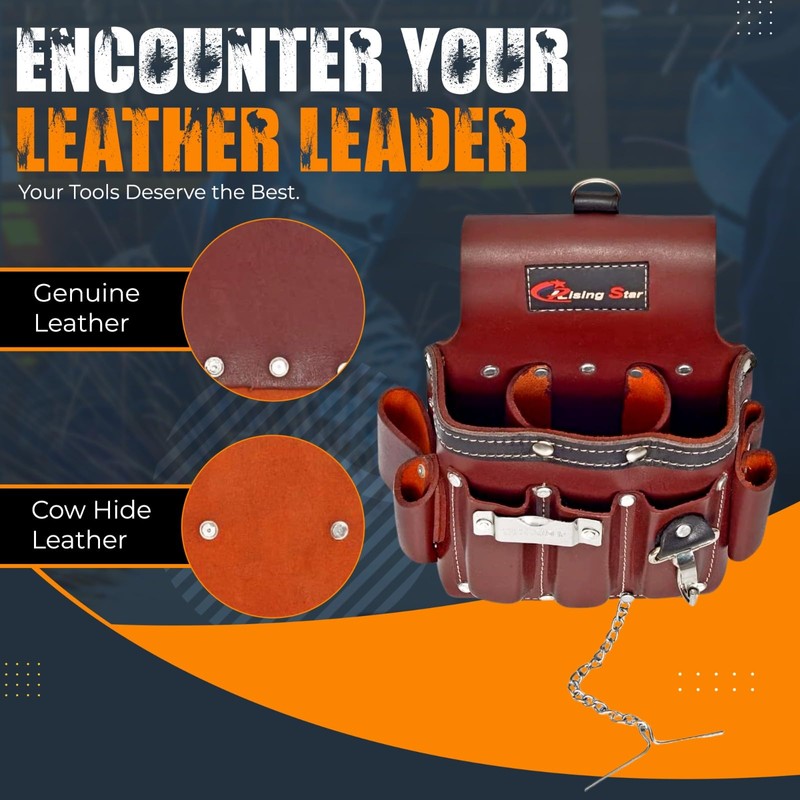 • 11 Pockets Functionality: The holder is designed to carry a variety of tools, including hammers, pliers, screwdrivers, wrenches, tape measures, and other essential tools. This multi- functional design ensures that all necessary tools are within reach, increasing efficiency during work. Rising Star Wears Leather Pouch is ideal for Electricians, Engineers, Craftsmen, Farmers, Mechanics and Carpenters etc.