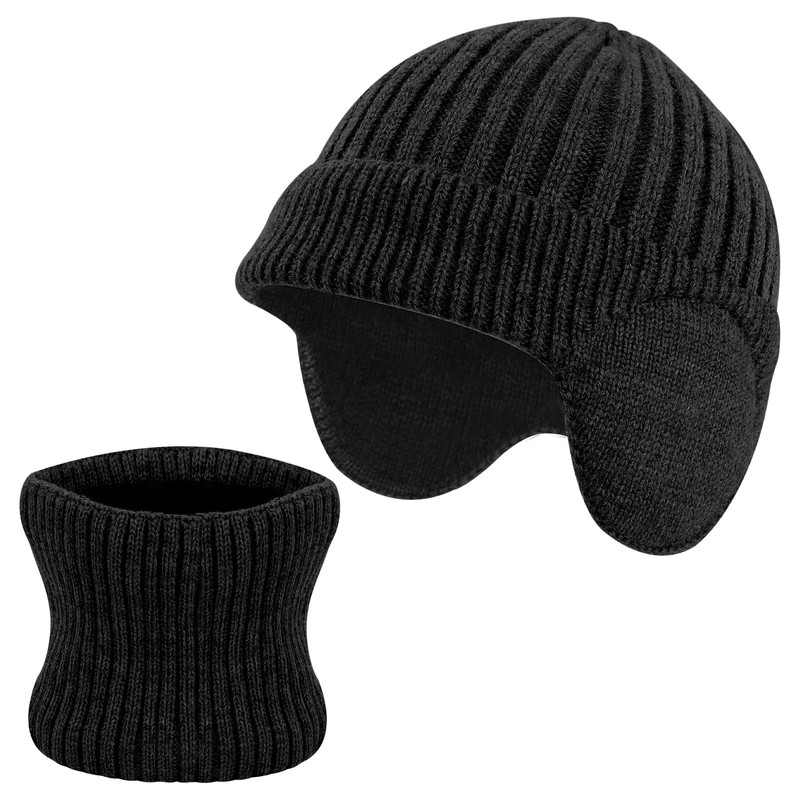 Risipu Baby Winter Hat Scarf Set Thick Woolen Toddler Toque Knitted Warm Ear Protection Neck Warmer Kids, black