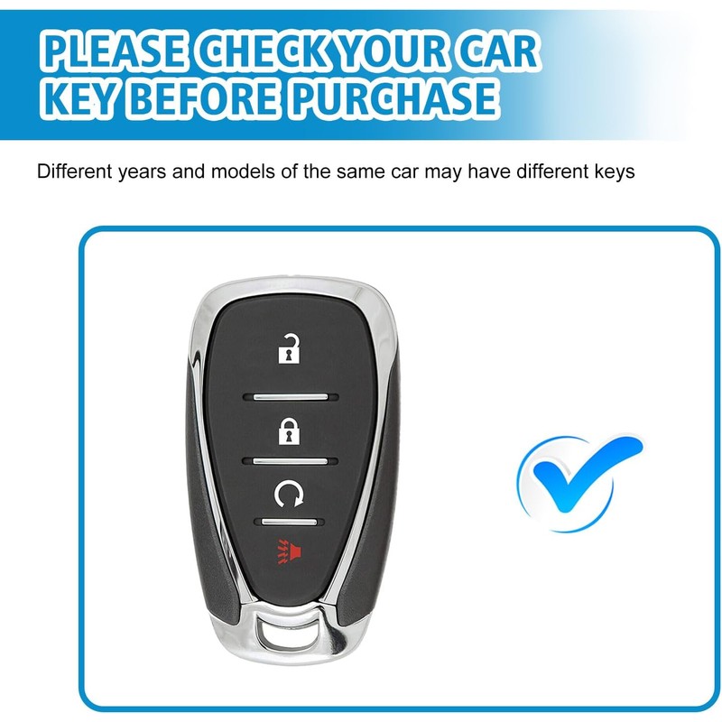 Compatibility: 4 button key fob cover fits Chevy keyless entry systems key, compatible with Chevy Bolt 2017-2021, Spark 2016-2022, Equinox 2018-2022, Traverse 2018-2022, Trax 2017-2020, Sonic Hatchback 2018-2020, Volt 2016-2021. Due to differences in the year and model of the car, there may be differences in the shape and size of the car key. Please double check your car key shape and size according to the pictures before purchasing.