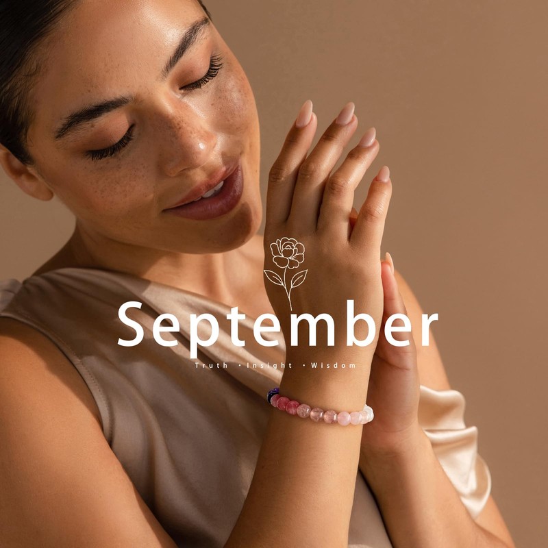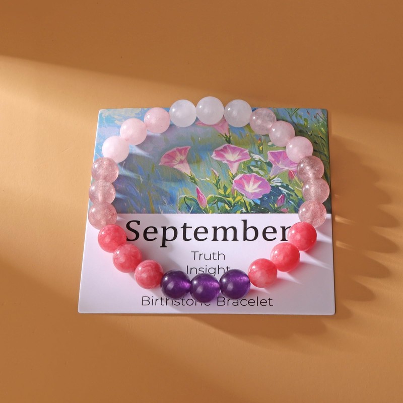 Risyfjew Birthstone Crystal Floral Bracelets for Women Men Colorful Stone September Bracelet for Women Reduce Anxiety Zodiac Month Bracelet Birthday Graduation Gifts