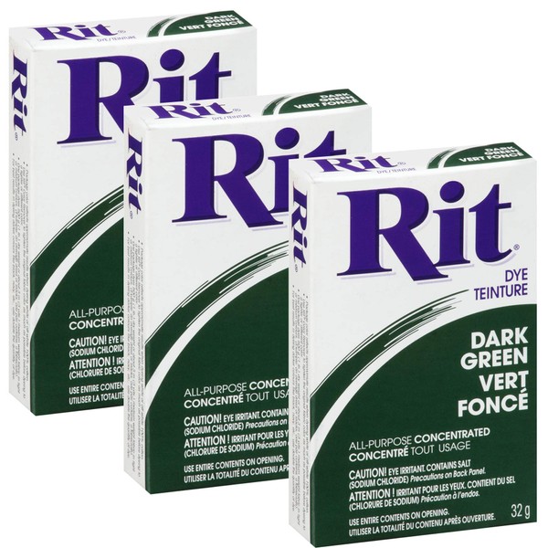 RIT All Purpose Powder Dye - Dark Green - 31.9g (1 1/8 oz) - 3 Pack