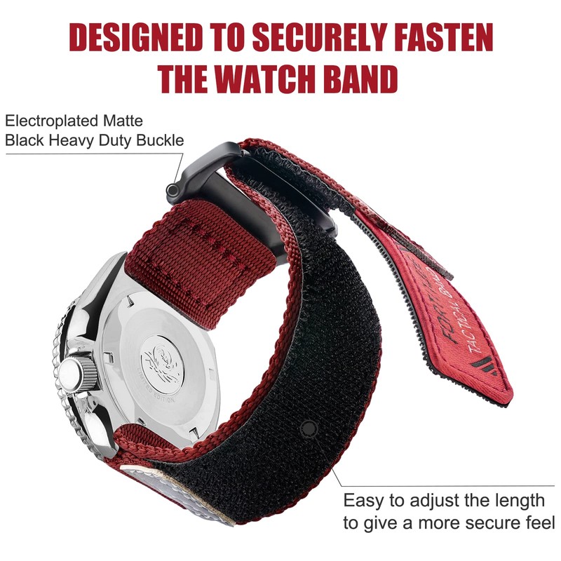 - Adjustable length & Safe closure-Designed to fit wrists 6.3"-9", each watch strap comes with electroplated black heavy duty buckle made of stainless steel. Simply hook the fastener through the loop of the hardware, and adjust accordingly to ensures a secure fit. This sport watch band is a stylish and functional accessory that will take you from the office to the great outdoors.