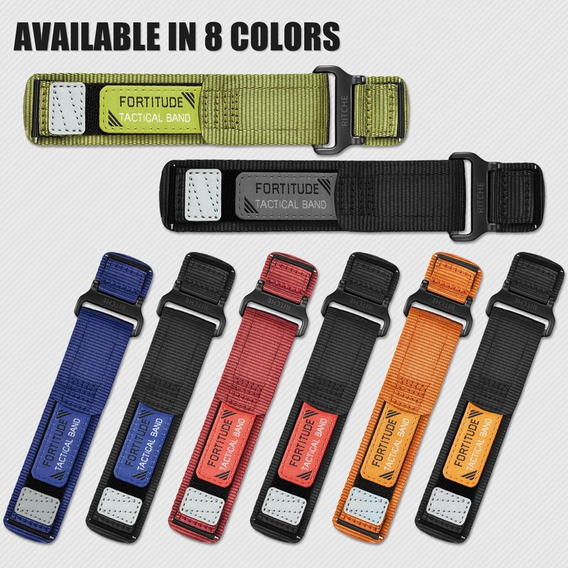 - Durability & Versatility-Crafted with a lightweight but durable weave ballistic nylon webbing and leather badge, the rugged and tactical nylon watch bands for men and women is thicker, heavier, stronger, more comfortable and breathable .Discover more color options from classic neutrals like black, gray, and navy blue, to more vibrant shades like crimson red, pumpkin orange,army green.There is always a color for every timepieces,mood and occasion from Ritche.