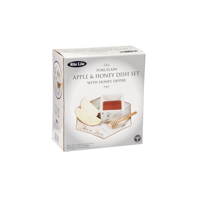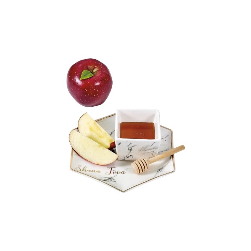 Rite Lite Hexagon Shaped Porcelain Apple & Honey Dish Set for Rosh Hashanah Shana Tova - Rosh Hashanah Holiday Gift