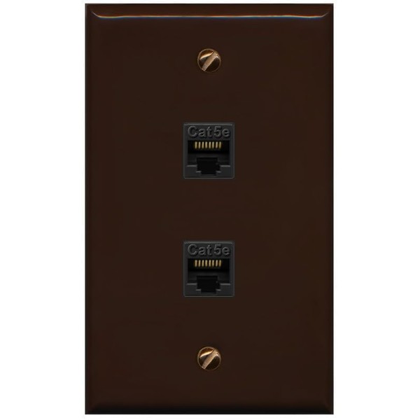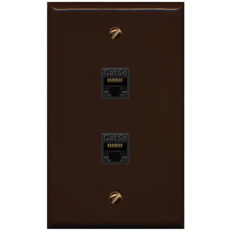 RiteAV 1 Gang 2 Port Cat5e Ethernet Wall Plate - Flat Style Brown