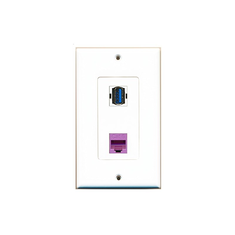 RiteAV 1 Port Cat6 Ethernet Purple 1 Port USB 3 A-A Wall Plate Oversized Jumbo MIDI