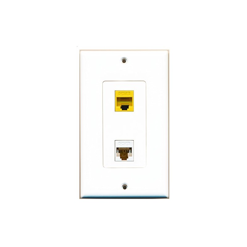 RiteAV 1 Port Cat6 Ethernet White 1 Port Cat6 Ethernet Yellow Wall Plate Oversized Jumbo MIDI
