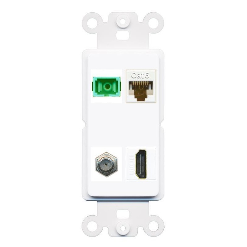 RiteAV 1 Port Fiber Optic Jack SC Simplex APC + Cat6 + Coax + HDMI Wall Plate - Rocker White