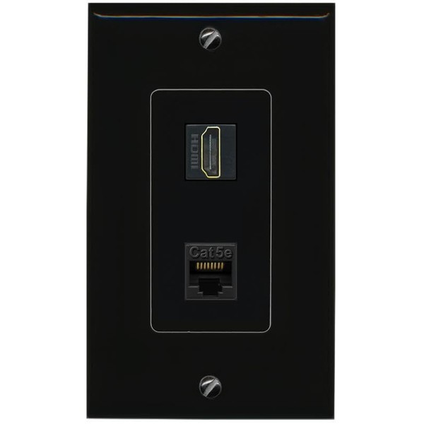 RiteAV 1 Port HDMI Cat5e-Ethernet Decorative Wall Plate - 1 Gang [Black/Black]