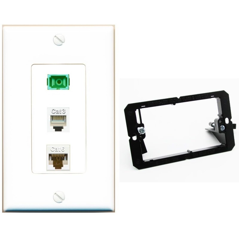 RiteAV 1 Port SC APC Simplex Phone and Cat6 Ethernet Wall Plate - Bracket [White]
