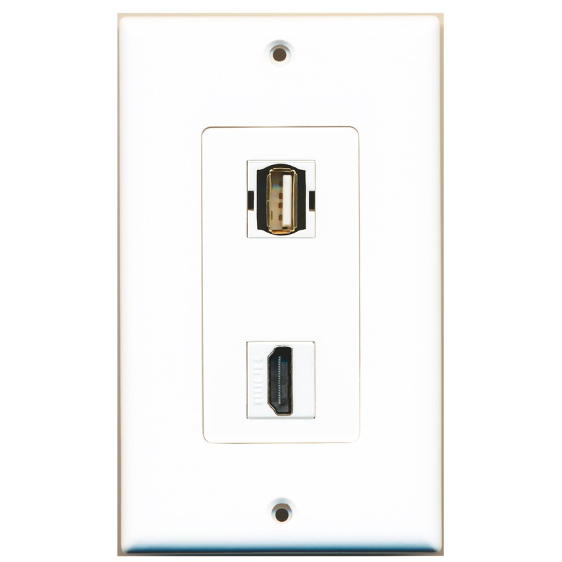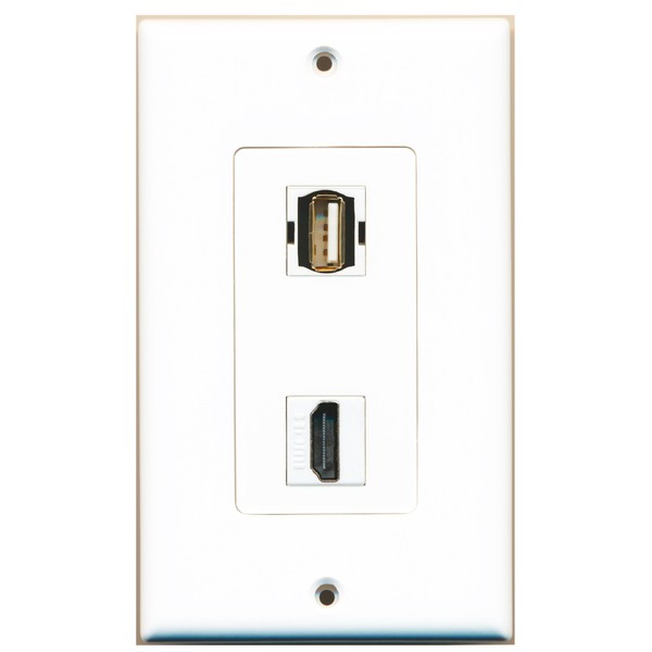 RiteAV - 1 USB-A and 1 HDMI Port Wall Plate, White