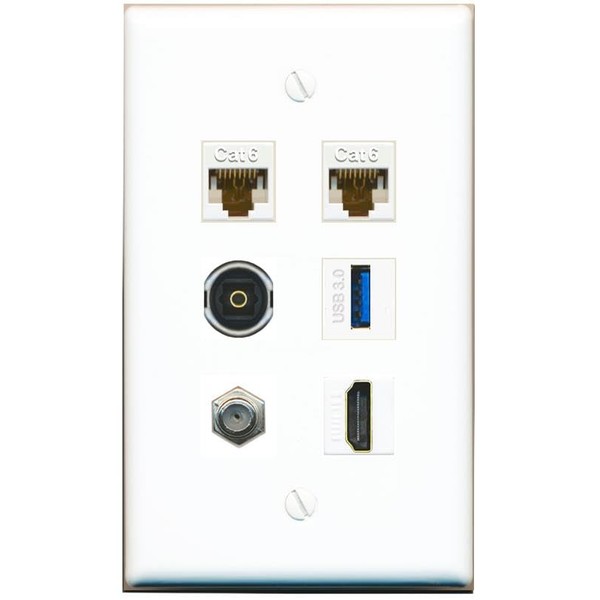 RiteAV 2 CAT6 Coax HDMI TOSLINK USB-3 Flat/Solid Wall Plate [White]