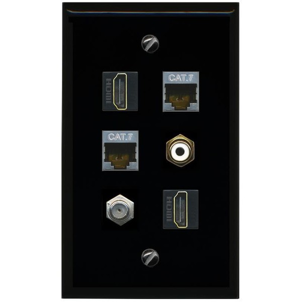 RiteAV 2 CAT7 Coax 2 HDMI RCA White Flat/Solid Wall Plate [Black]