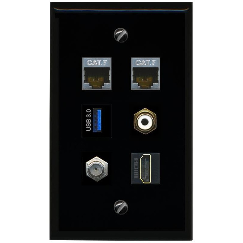 RiteAV 2 CAT7 Coax HDMI RCA White USB 3 Flat/Solid Wall Plate [Black]