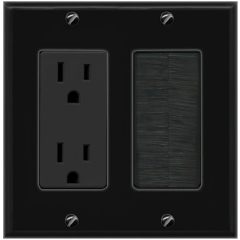 RiteAV - 2 Gang 15A Outlet Mesh-Brush Decorative Wall Plate - Black