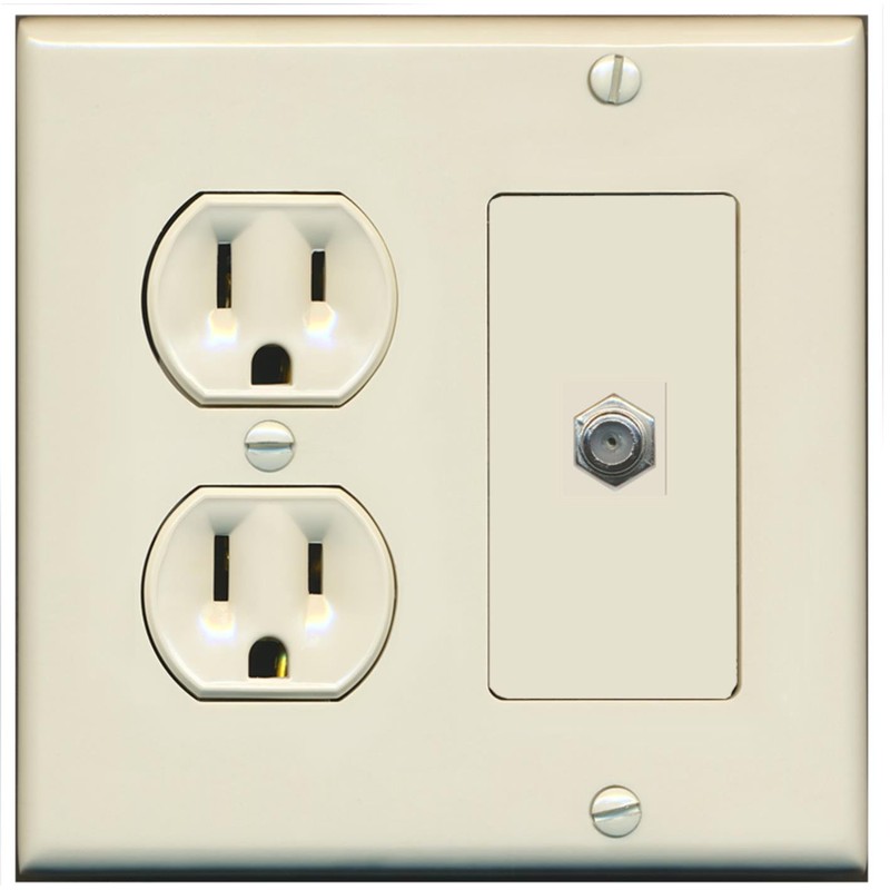 RiteAV (2 Gang Decorative) 15 Amp Round Power Outlet Coax Cable TV Wall Plate - Light Almond