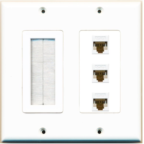 RiteAV (2 Gang Decorative Mesh-Brush 3 Cat6 White Wall Plate White