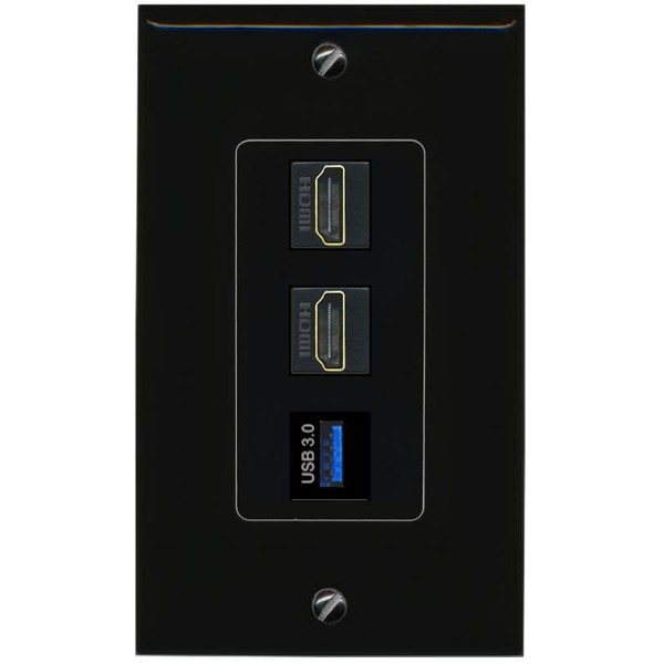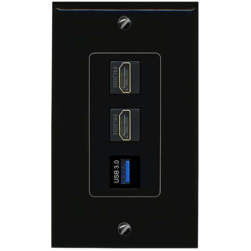 RiteAV 2 HDMI USB-3 Wall Plate Decorative Female-Female [Black]