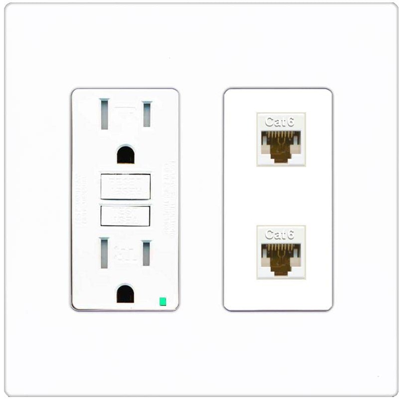 RiteAV 2 Port Cat6 Ethernet Wall Plate - GFCI [Screwless White]