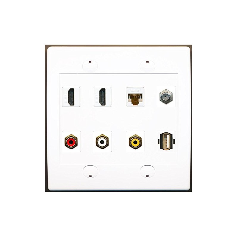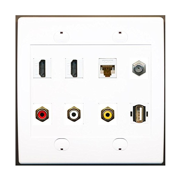 RiteAV 2 Port HDMI 1 Cat6 Coax 3X RCA Composite USB Wall Plate