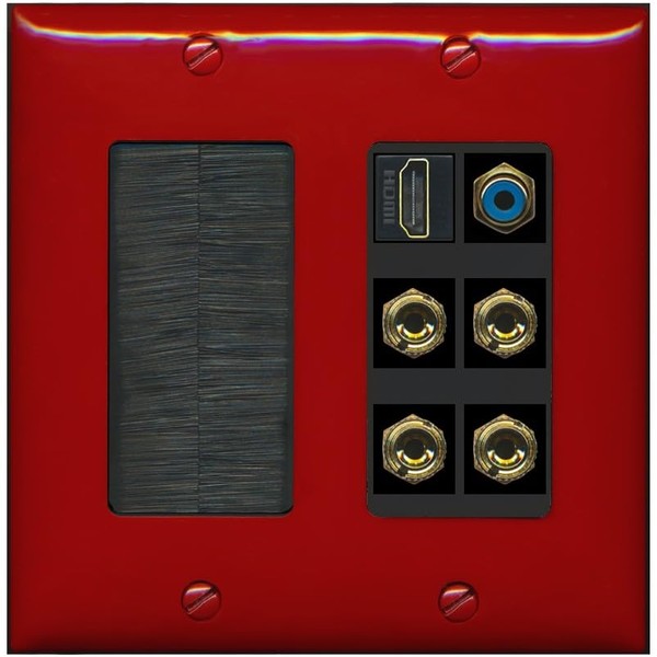 RiteAV 2 Speaker 4 Banana Binding Post HDMI RCA Wall Plate - Brush [Red/Black]