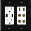 RiteAV 2 Speaker 4 Banana Binding Post Wall Plate with 2 HDMI Jacks - USB Outlet [Black/White]