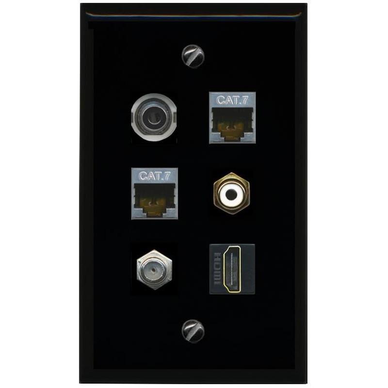 RiteAV 3.5mm 2 CAT7 Coax HDMI RCA White Flat/Solid Wall Plate [Black]