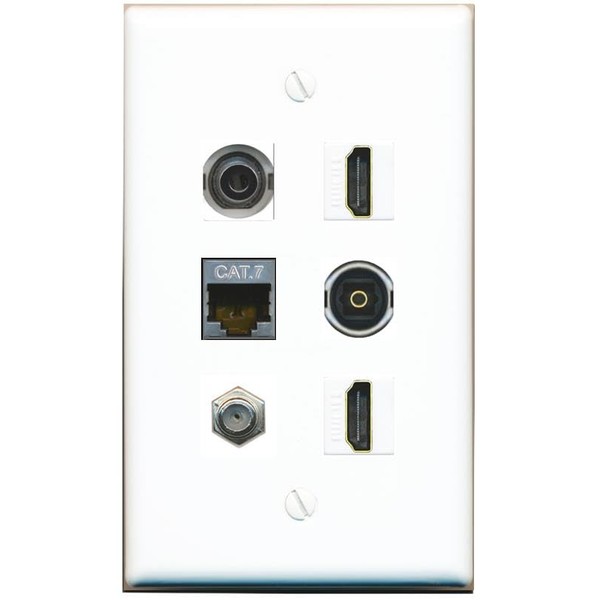 RiteAV 3.5mm CAT7 Coax 2 HDMI TOSLINK Flat/Solid Wall Plate [White]