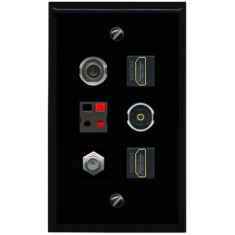 RiteAV 3.5mm Coax 2 HDMI Speaker TOSLINK Flat/Solid Wall Plate [Black]