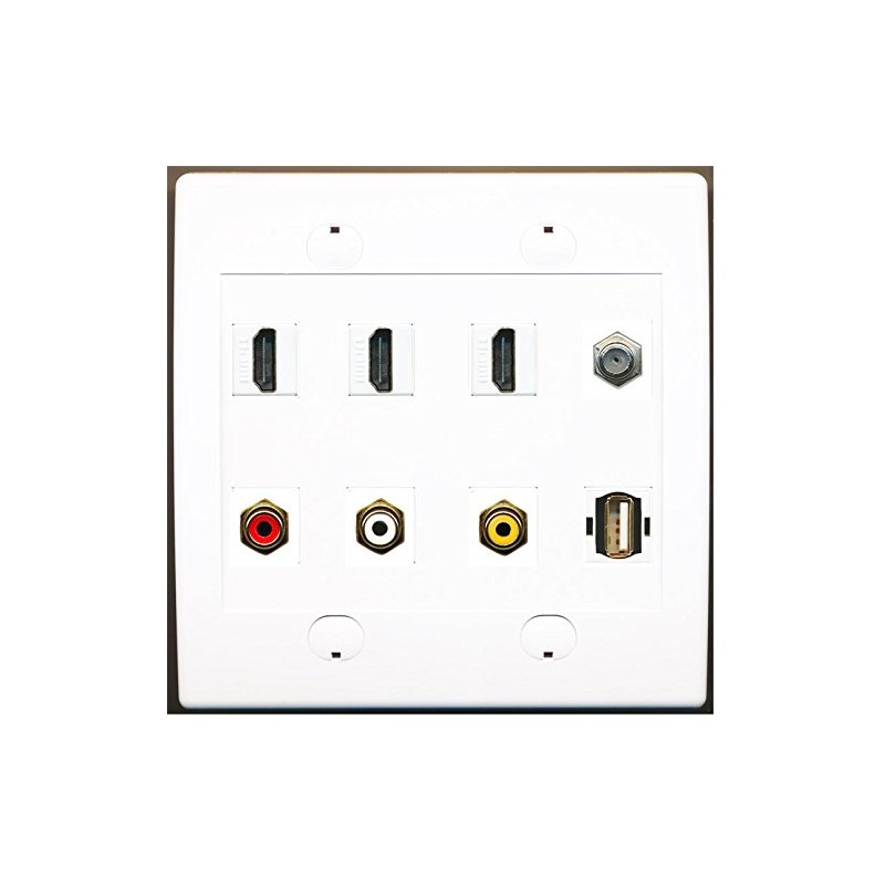 RiteAV 3 Port HDMI 1 x Coax Cable TV 3 RCA Composite USB Wall Plate
