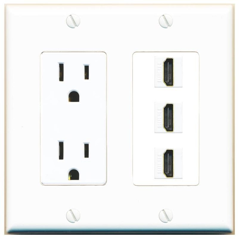 RiteAV 3 Port HDMI Wall Plate - Outlet [White]