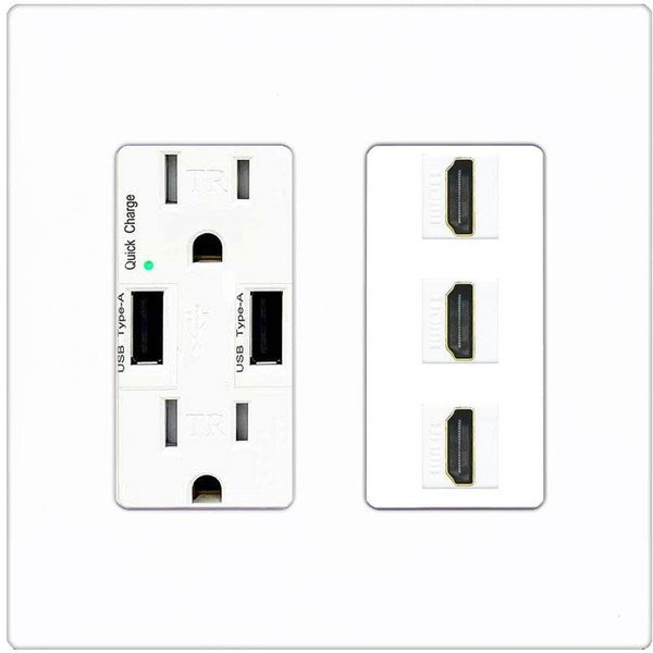 RiteAV 3 Port HDMI Wall Plate - USB Charger [Screwless White]