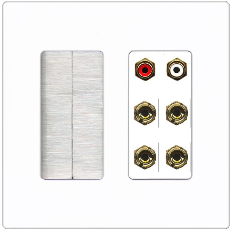 RiteAV 4 Banana (2 Speaker) Binding Post Wall Plate with 2 RCA Jacks (Red+White) - Brush [Screwless White]