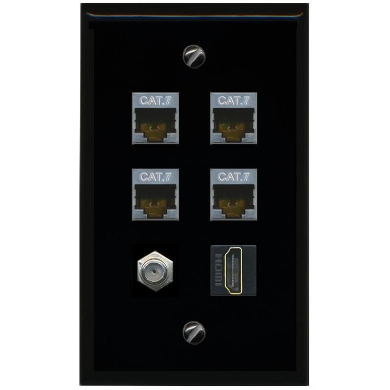 RiteAV 4 CAT7 Coax HDMI Flat/Solid Wall Plate [Black]