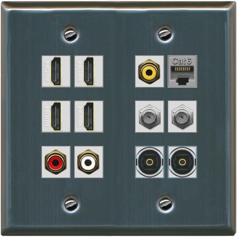 RiteAV 4 HDMI 3 x RCA 2 Coaxial 1 Ethernet CAT6 and 2 Toslink Wall Plate - Flat 2 Gang [Stainless Steel]