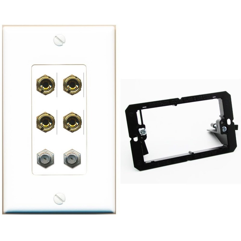 RiteAV 4 Port Banana 2 Speaker Binding Post 2 Coax Wall Plate - Bracket [White]